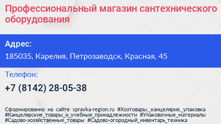 Профессиональный магазин сантехнического оборудования по адресу 185035, Карелия, Петрозаводск, Красная, 45 в дальнейшем Организация, размещена в следующих категориях: