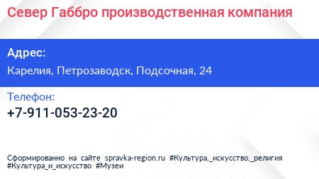 Север Габбро, производственная компания по адресу Карелия, Петрозаводск, Подсочная, 24 в дальнейшем Организация, размещена в следующих категориях: