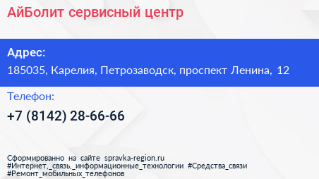 АйБолит, сервисный центр по адресу 185035, Карелия, Петрозаводск, проспект Ленина, 12 в дальнейшем Организация, размещена в следующих категориях: