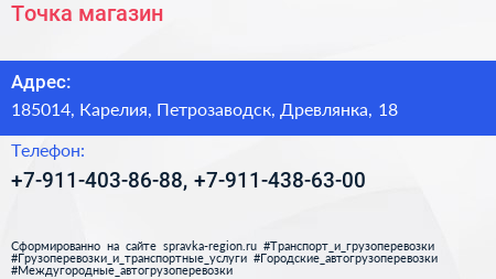 Точка, магазин по адресу 185014, Карелия, Петрозаводск, Древлянка, 18 в дальнейшем Организация, размещена в следующих категориях: