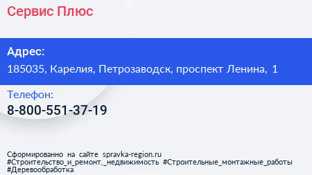Сервис Плюс по адресу 185035, Карелия, Петрозаводск, проспект Ленина, 1 в дальнейшем Организация, размещена в следующих категориях: