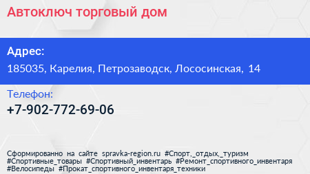 Автоключ, торговый дом по адресу 185035, Карелия, Петрозаводск, Лососинская, 14 в дальнейшем Организация, размещена в следующих категориях: