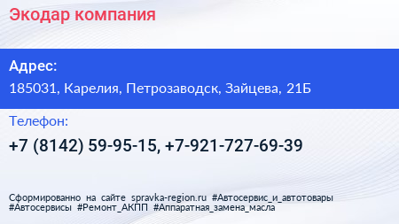 Экодар, компания по адресу 185031, Карелия, Петрозаводск, Зайцева, 21Б в дальнейшем Организация, размещена в следующих категориях: