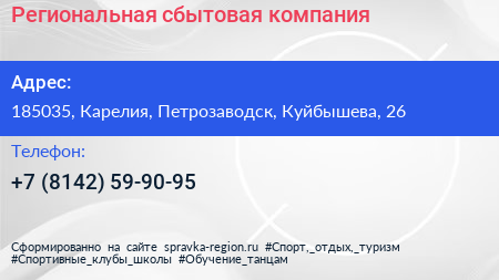 Региональная сбытовая компания по адресу 185035, Карелия, Петрозаводск, Куйбышева, 26 в дальнейшем Организация, размещена в следующих категориях: