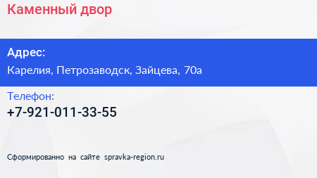 Каменный двор по адресу Карелия, Петрозаводск, Зайцева, 70а в дальнейшем Организация, размещена в следующих категориях: