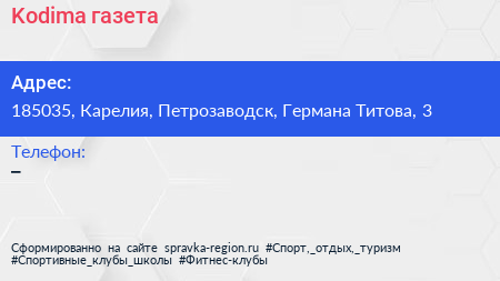 Kodima, газета по адресу 185035, Карелия, Петрозаводск, Германа Титова, 3 в дальнейшем Организация, размещена в следующих категориях: