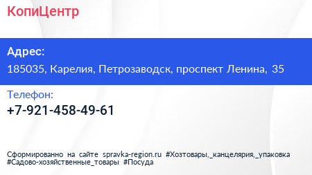 КопиЦентр по адресу 185035, Карелия, Петрозаводск, проспект Ленина, 35 в дальнейшем Организация, размещена в следующих категориях: