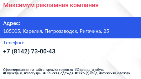 Максимум, рекламная компания по адресу 185005, Карелия, Петрозаводск, Ригачина, 25 в дальнейшем Организация, размещена в следующих категориях:
