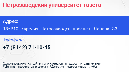 Петрозаводский университет, газета по адресу 185910, Карелия, Петрозаводск, проспект Ленина, 33 в дальнейшем Организация, размещена в следующих категориях: