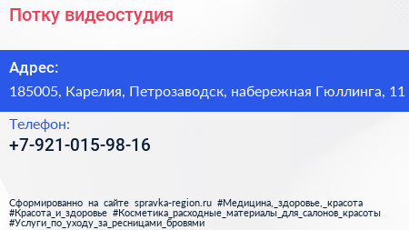 Потку, видеостудия по адресу 185005, Карелия, Петрозаводск, набережная Гюллинга, 11 в дальнейшем Организация, размещена в следующих категориях: