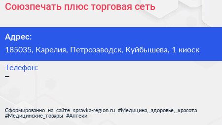 Союзпечать-плюс, торговая сеть по адресу 185035, Карелия, Петрозаводск, Куйбышева, 1 киоск в дальнейшем Организация, размещена в следующих категориях: