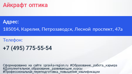 Айкрафт, оптика по адресу 185014, Карелия, Петрозаводск, Лесной проспект, 47а в дальнейшем Организация, размещена в следующих категориях: