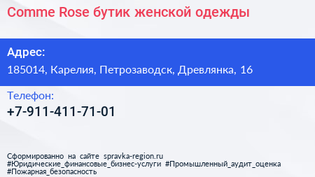 Comme Rose, бутик женской одежды по адресу 185014, Карелия, Петрозаводск, Древлянка, 16 в дальнейшем Организация, размещена в следующих категориях: