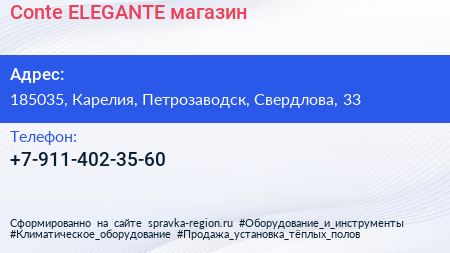 Conte ELEGANTE, магазин по адресу 185035, Карелия, Петрозаводск, Свердлова, 33 в дальнейшем Организация, размещена в следующих категориях:
