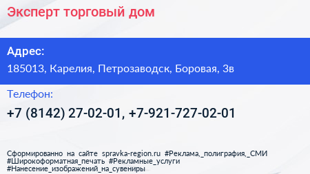Эксперт, торговый дом по адресу 185013, Карелия, Петрозаводск, Боровая, 3в в дальнейшем Организация, размещена в следующих категориях: