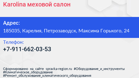 Karolina, меховой салон по адресу 185035, Карелия, Петрозаводск, Максима Горького, 24 в дальнейшем Организация, размещена в следующих категориях: