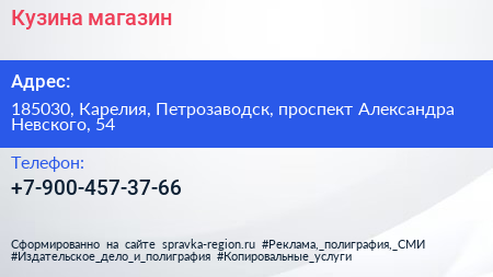 Кузина, магазин по адресу 185030, Карелия, Петрозаводск, проспект Александра Невского, 54 в дальнейшем Организация, размещена в следующих категориях: