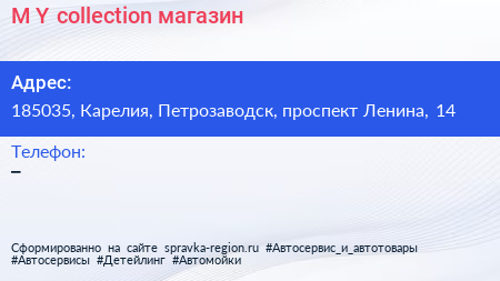 M&Y collection, магазин по адресу 185035, Карелия, Петрозаводск, проспект Ленина, 14 в дальнейшем Организация, размещена в следующих категориях: