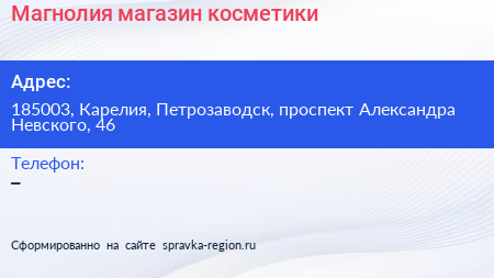 Магнолия, магазин косметики по адресу 185003, Карелия, Петрозаводск, проспект Александра Невского, 46 в дальнейшем Организация, размещена в следующих категориях: