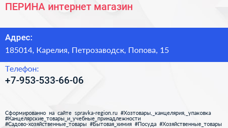 ПЕРИНА, интернет-магазин по адресу 185014, Карелия, Петрозаводск, Попова, 15 в дальнейшем Организация, размещена в следующих категориях: