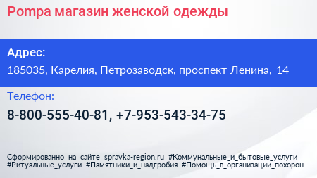 Pompa, магазин женской одежды по адресу 185035, Карелия, Петрозаводск, проспект Ленина, 14 в дальнейшем Организация, размещена в следующих категориях:
