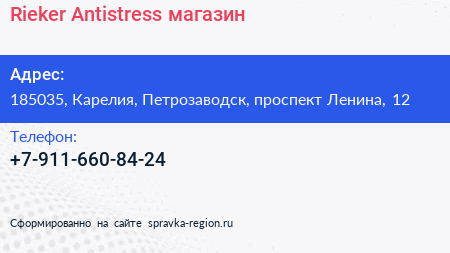 Rieker Antistress, магазин по адресу 185035, Карелия, Петрозаводск, проспект Ленина, 12 в дальнейшем Организация, размещена в следующих категориях: