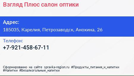 Взгляд-Плюс, салон оптики по адресу 185035, Карелия, Петрозаводск, Анохина, 26 в дальнейшем Организация, размещена в следующих категориях: