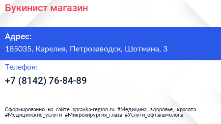 Букинист, магазин по адресу 185035, Карелия, Петрозаводск, Шотмана, 3 в дальнейшем Организация, размещена в следующих категориях: