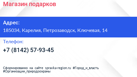 Магазин подарков по адресу 185034, Карелия, Петрозаводск, Ключевая, 14 в дальнейшем Организация, размещена в следующих категориях: