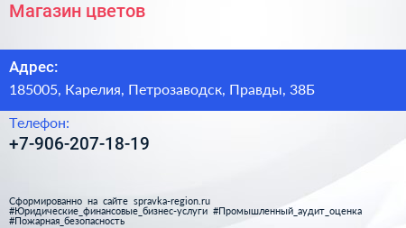 Магазин цветов по адресу 185005, Карелия, Петрозаводск, Правды, 38Б в дальнейшем Организация, размещена в следующих категориях: