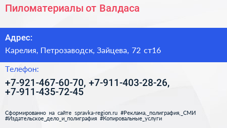 Пиломатериалы от Валдаса по адресу Карелия, Петрозаводск, Зайцева, 72 ст16 в дальнейшем Организация, размещена в следующих категориях:
