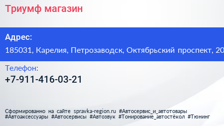 Триумф, магазин по адресу 185031, Карелия, Петрозаводск, Октябрьский проспект, 20 в дальнейшем Организация, размещена в следующих категориях: