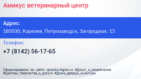 Амикус, ветеринарный центр по адресу 185030, Карелия, Петрозаводск, Загородная, 15 в дальнейшем Организация, размещена в следующих категориях: