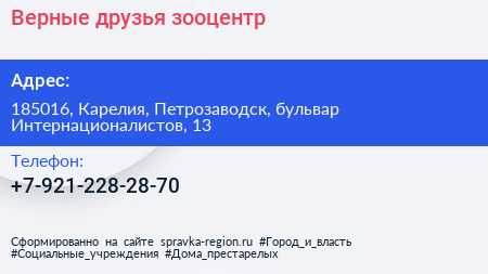 Верные друзья, зооцентр по адресу 185016, Карелия, Петрозаводск, бульвар Интернационалистов, 13 в дальнейшем Организация, размещена в следующих категориях: