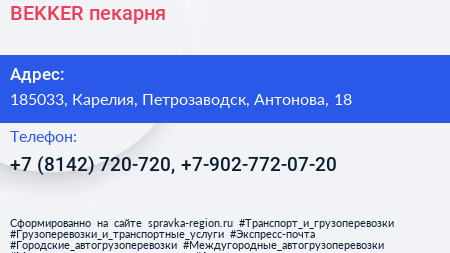 BEKKER, пекарня по адресу 185033, Карелия, Петрозаводск, Антонова, 18 в дальнейшем Организация, размещена в следующих категориях: