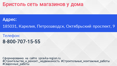 Бристоль, сеть магазинов у дома по адресу 185031, Карелия, Петрозаводск, Октябрьский проспект, 9 в дальнейшем Организация, размещена в следующих категориях: