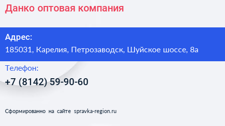 Данко, оптовая компания по адресу 185031, Карелия, Петрозаводск, Шуйское шоссе, 8а в дальнейшем Организация, размещена в следующих категориях: