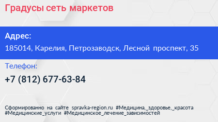 Градусы, сеть маркетов по адресу 185014, Карелия, Петрозаводск, Лесной проспект, 35 в дальнейшем Организация, размещена в следующих категориях: