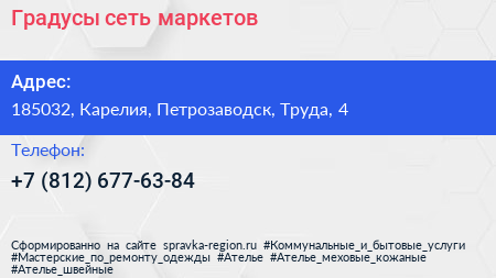 Градусы, сеть маркетов по адресу 185032, Карелия, Петрозаводск, Труда, 4 в дальнейшем Организация, размещена в следующих категориях: