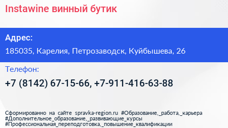 Instawine, винный бутик по адресу 185035, Карелия, Петрозаводск, Куйбышева, 26 в дальнейшем Организация, размещена в следующих категориях: