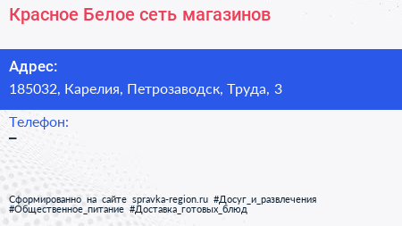 Красное & Белое, сеть магазинов по адресу 185032, Карелия, Петрозаводск, Труда, 3 в дальнейшем Организация, размещена в следующих категориях: