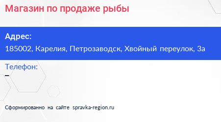 Магазин по продаже рыбы по адресу 185002, Карелия, Петрозаводск, Хвойный переулок, 3а в дальнейшем Организация, размещена в следующих категориях: