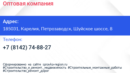 Оптовая компания по адресу 185031, Карелия, Петрозаводск, Шуйское шоссе, 8 в дальнейшем Организация, размещена в следующих категориях: