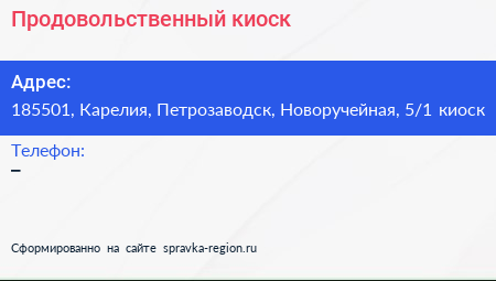 Продовольственный киоск по адресу 185501, Карелия, Петрозаводск, Новоручейная, 5/1 киоск в дальнейшем Организация, размещена в следующих категориях: