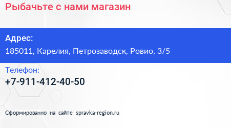 Рыбачьте с нами, магазин по адресу 185011, Карелия, Петрозаводск, Ровио, 3/5 в дальнейшем Организация, размещена в следующих категориях: