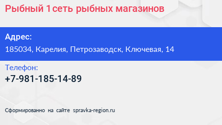 Рыбный №1, сеть рыбных магазинов по адресу 185034, Карелия, Петрозаводск, Ключевая, 14 в дальнейшем Организация, размещена в следующих категориях: