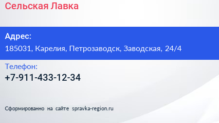Сельская Лавка по адресу 185031, Карелия, Петрозаводск, Заводская, 24/4 в дальнейшем Организация, размещена в следующих категориях: