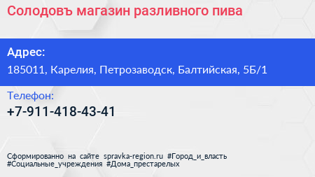 Солодовъ, магазин разливного пива по адресу 185011, Карелия, Петрозаводск, Балтийская, 5Б/1 в дальнейшем Организация, размещена в следующих категориях: