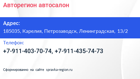Авторегион, автосалон по адресу 185035, Карелия, Петрозаводск, Ленинградская, 13/2 в дальнейшем Организация, размещена в следующих категориях: