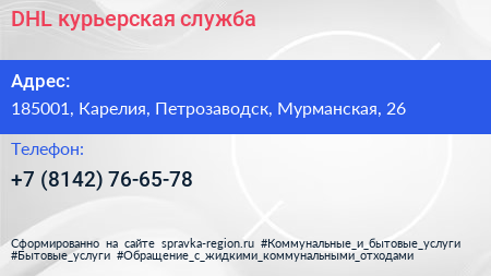 DHL, курьерская служба по адресу 185001, Карелия, Петрозаводск, Мурманская, 26 в дальнейшем Организация, размещена в следующих категориях:
